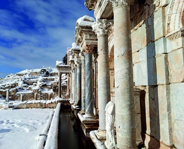 BURDUR – Toroslar’ın zirvesinde, bulutların arasındaki şehir Sagalassos’ta, 1800 yıllık bir uykudan uyanış hikayesi yazılıyor. Antik kentin en görkemli yapısı Antoninler Çeşmesi’nin (Nymphaeum) zamana yenik düşen parçaları, Efesus Stone’un doğaltaş sponsorluğu kapsamında temin ettiği blok mermerlerle tamamlanıyor. Roma döneminin mühendislik harikası, bu kurumsal iş birliğiyle özgün dokusuna en yakın malzemeyle yeniden ayağa kalkıyor.